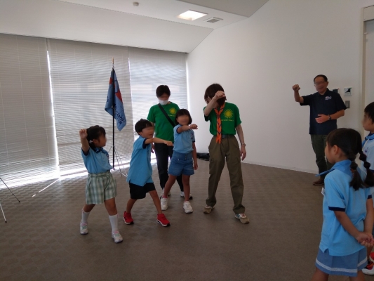 2025年8月24日ビーバー隊の入隊式を行いました。新たに3名のスカウトが加わります。それぞれ誓いの言葉を暗唱し(うまく言えなくてもリーダー...