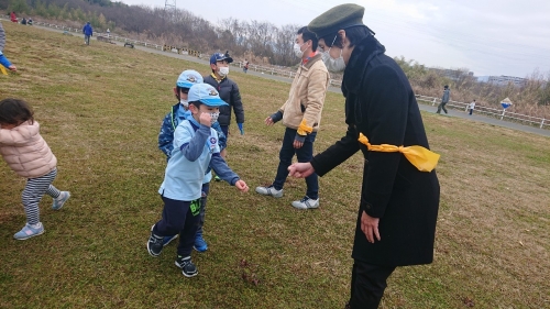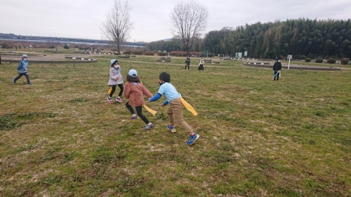 十分に凧揚げ活動を楽しんだ後のゲームでも走り回っていました。