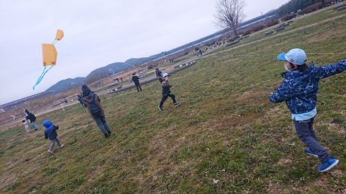 春になれば桜や色とりどりの花、新緑、雑草にまでも溢れる生命力を感じられ気分も明るくなりますが、こんなどよ~んと寒い冬にはやはりジャンバーも脱ぎ捨て、ほっぺを紅くしニコニコ笑いながら凧揚げをして、走り回っている子ども達の生命力溢れる姿を見ることで自然と明るい気持ちにさせられます。