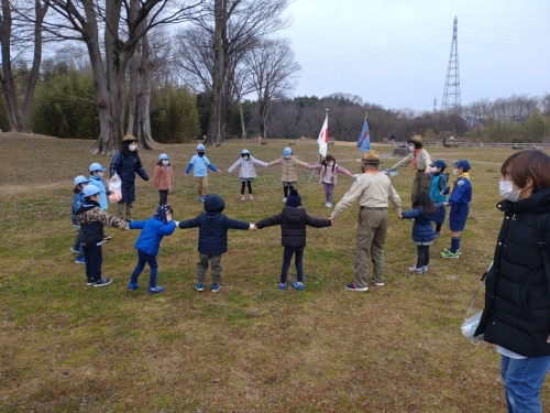 「ビーバースカウトのやくそく」と「ビーバー隊のきまり」の唱和をドキドキしながらも大きな声で立派に言ってくれました。活躍を期待しています!