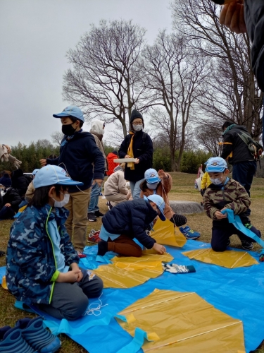 今年も向日1団のみんなが平和で健やかに活動できますように~と願いを込めて、天高く空に凧が揚がればいいな~と思って用意しました。