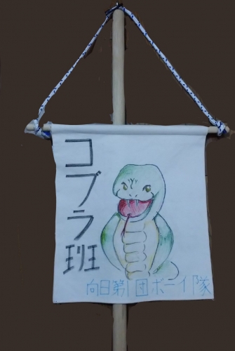 今日は、班旗を完成させたり、ナタを砥いだり進級科目の履修をしたりしました。今日の班集会は絵の上手いスカウトのスケジュールを考えて開催日時を決めたので、やっと班旗を完成させることができました。なかなかの出来だと思います。