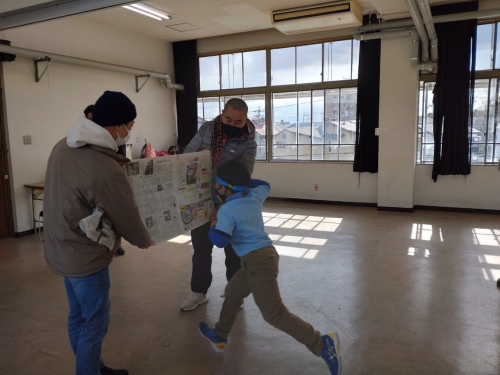 みんな喜んで新聞紙に向かって突進していました。爆弾とマッチゲームも面白く「もう一回やりた~い!」と何度もリクエストがありました。