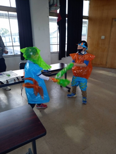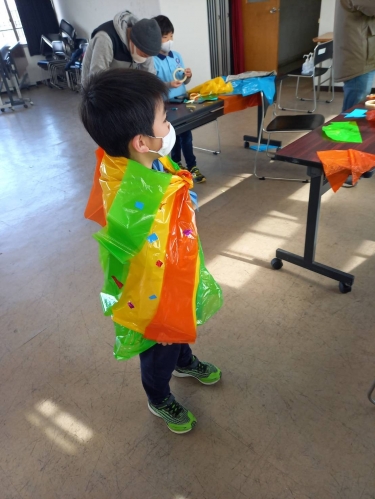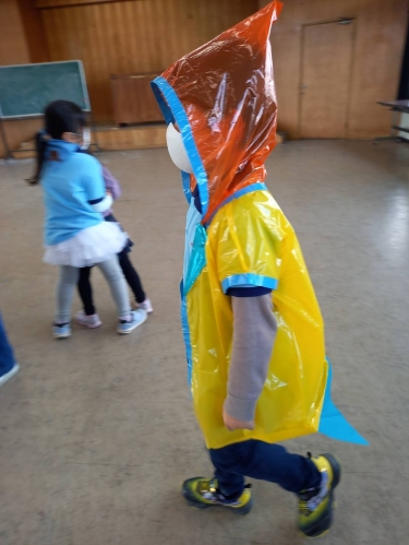 ドラゴンの羽を付けたマント&剣、鬼の衣装&とげとげの付いた金棒、長めのパーティードレス風、フード付きのマント、きらきらの折り紙を丁寧に切って装飾を施したマント、3色のストライプできらきらをちりばめたマント等々、子ども達の発想は本当に豊かだな~♡♡♡と惚れ惚れしました。(*^o^*)