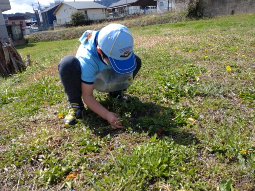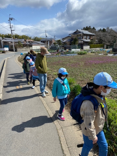 約3.7キロの行程でしたが、橋の上から川の魚が泳いでいないか観察したり、鳥や遠くの犬の鳴き声に耳を澄ませてみたり、竹林の横を通るときは少し冷やっとしたり等々、春の風に吹かれて楽しみながら歩きました。中でも一番春を感じたのは、オオイヌノフグリ、ホトケノザ、たんぽぽ、ぺんぺん草などの雑草たちでした。菜の花の黄色も輝いていました。