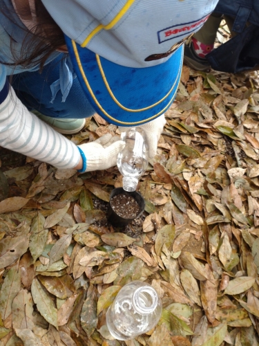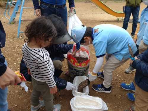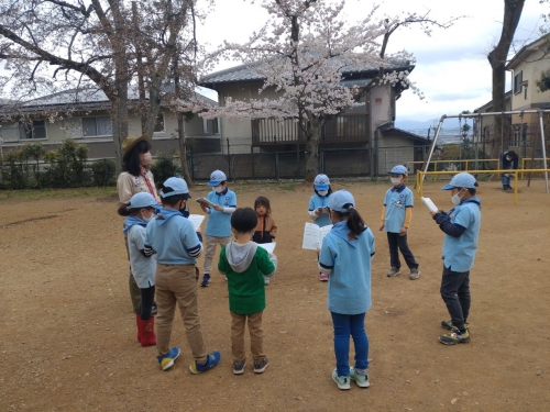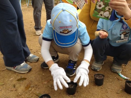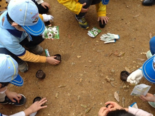 本日は、勝山公園にて「みどりを増やそう」をテーマに綿の種まきをしたり、地球の環境についても学びました。
