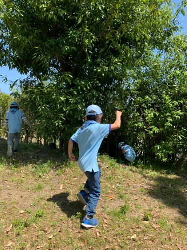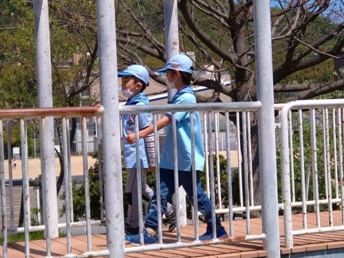 青空の下、公園では伸び伸びと自由に遊んでいたスカウト達でした。大人に決められたルールのある遊びではなく、高低差のある青々とした芝生の上を行ったり来たり、登ったり降りたりしながら自分達で考えた遊びを楽しんでいました。解放感いっぱいな素敵な姿でした。