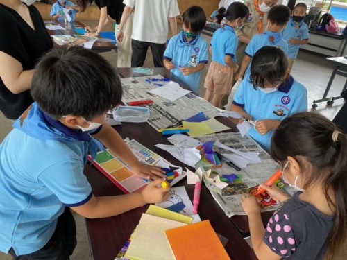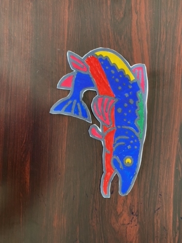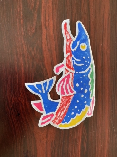 次に釣りざおの先にたらした糸にじしゃくを付けたら釣りざおも完成。