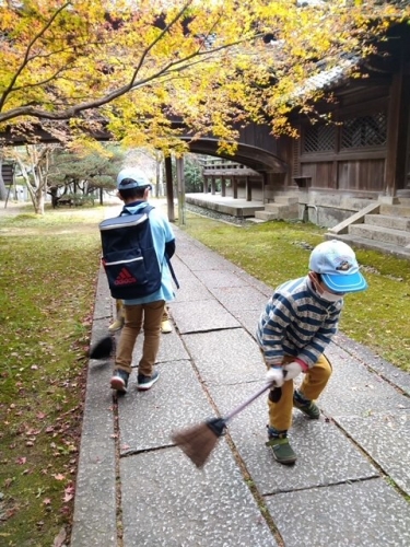 ていねいに葉っぱを取り除き、石畳がこんなにきれいになりました。
