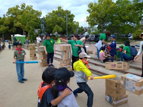 「だるま落とし」ならぬ「ダンボール落とし」でストレスを発散したり。
