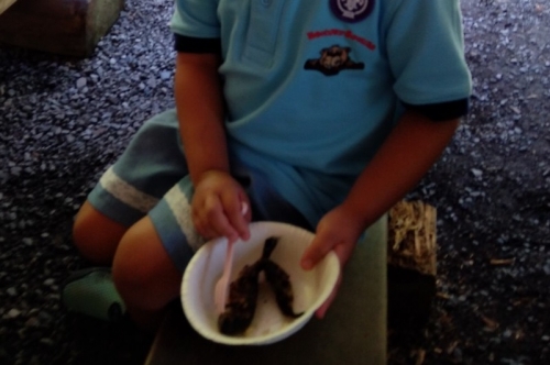 普段、さかなを食べない子も頭からバリバリと食べていました。