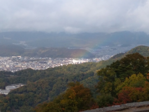 みんなでお弁当を食べていると、なんと虹がかかっていました!
