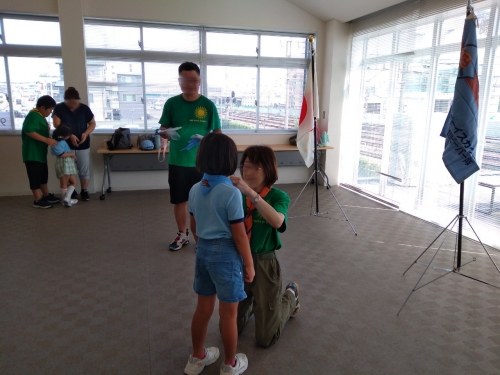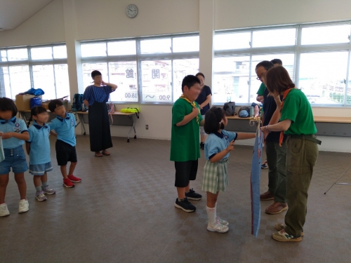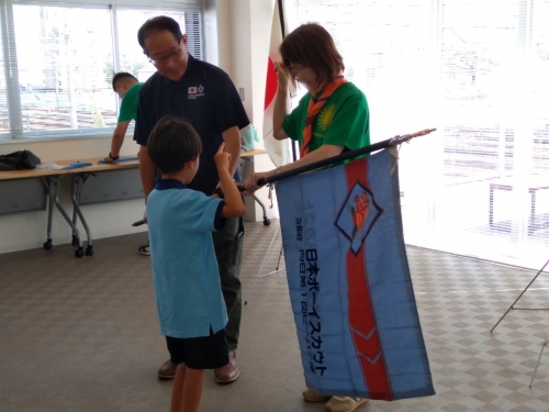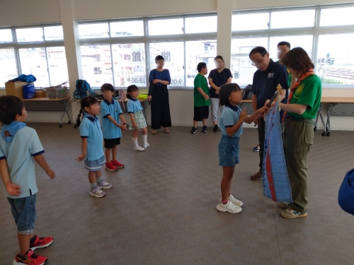 それぞれ誓いの言葉を暗唱し(うまく言えなくてもリーダーが助けてくれます)