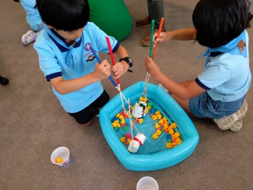 マジックハンドで遊んだ後は、千本釣りやお菓子のつかみ取りなどを楽しみました。