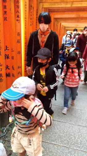 参拝を終え、千本鳥居からハイキングがスタート!初めて稲荷山に来た子どもは、「不思議なところだ~」と目を輝かせていました。