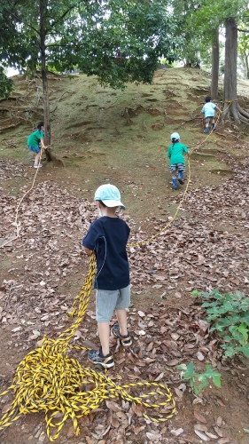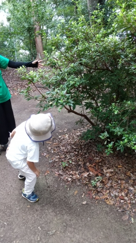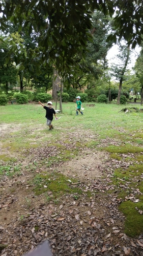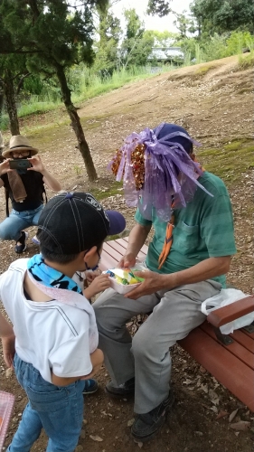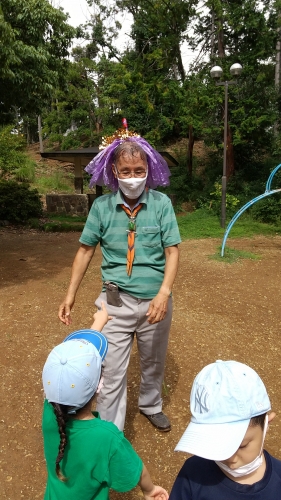 今日は、はじめのセレモニー終了後、勝山公園で活動しようと思っていたら、泣いている”かみなりどん”と出会いました。