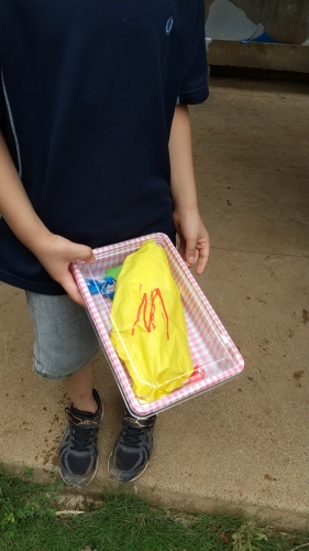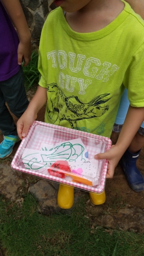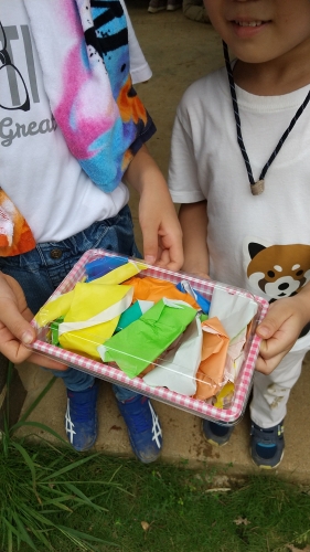 見つけたよ~と言って、かみなりどんに渡しに行ってくれました。