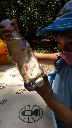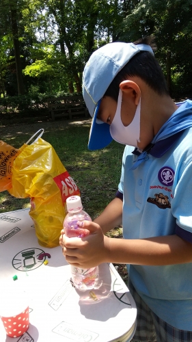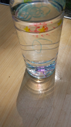 ペットボトルに描いた絵が光に照らされて、机に写っているのを発見し喜んでいる子もいました。(*^o^*)