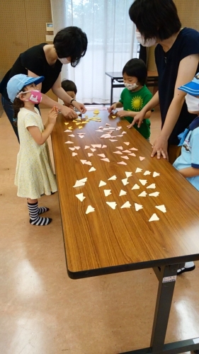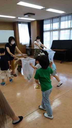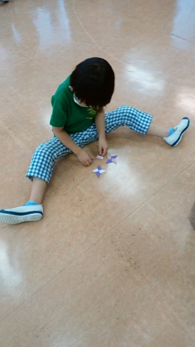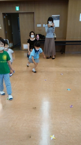 手裏剣に細工がしてある点数集めゲーム、新聞玉入れゲームなども楽しみました。
