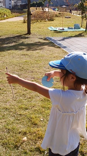 遊具で遊んだ後は、UFO飛ばしに挑戦!