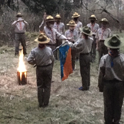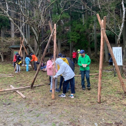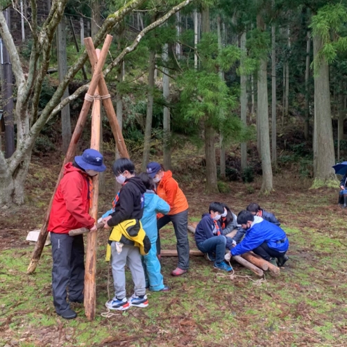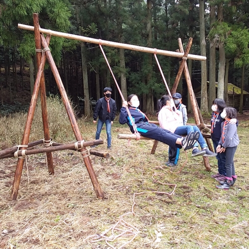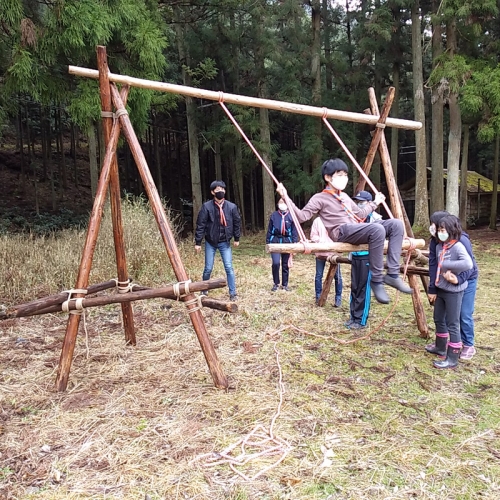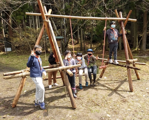 春キャンプは、ぼくの初めてのキャンプでした。雨がふって、寒かったし、リタイアしたいといっている人もいました。けれど、ブランコ作りは楽しかったです。初級スカウトになっていた人もいて、すごかったです。ぼくは、自分が進級できるか、不安です。(a.K)