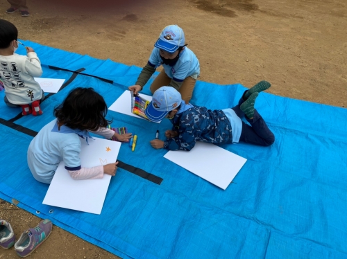 とても丁寧に時間をかけて、青空の下で気持ちよさそうに絵を描いていました。
