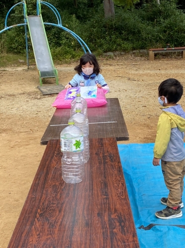 「空気」もないと生きていけないことを伝えると「そうだな~!」と納得していました。人間は空気中の酸素を吸って活動し、二酸化炭素を排出していること、植物は二酸化炭素を吸って、酸素を作ってくれていることなどイラストを使って説明すると、「植物がないとこの世は全滅だな~!」とよく話を理解してくれていました。