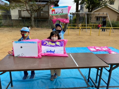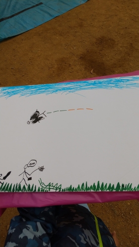 2種類のホバークラフトを見たり、風船で遊んでからホワイトボードに好きな絵を描いていきました。